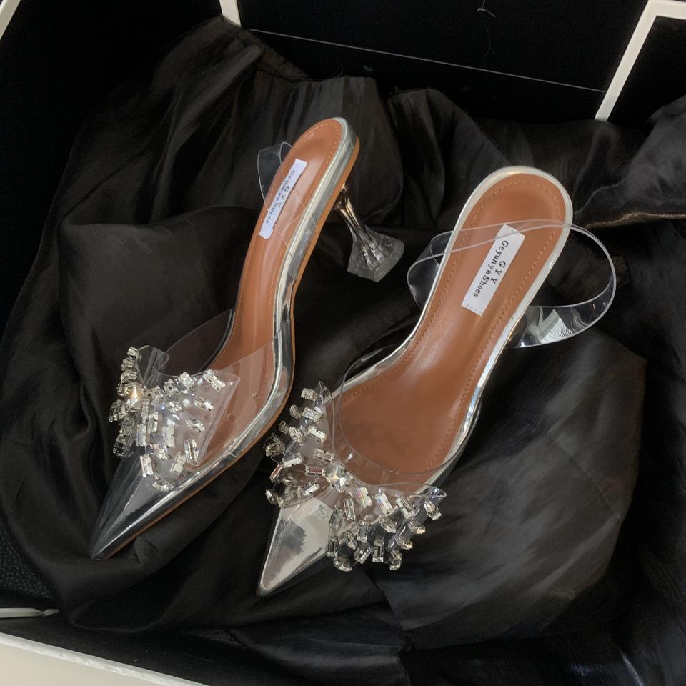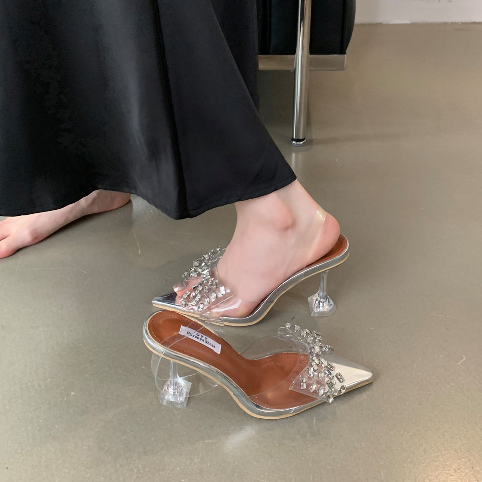 Sandalias de Cristal Transparente con Lazo de Pedrería, Punta Abierta, Plataforma para Aumentar la Altura, para Verano, Tallas 35-40, Disponibles en Stock, Novedad 2024