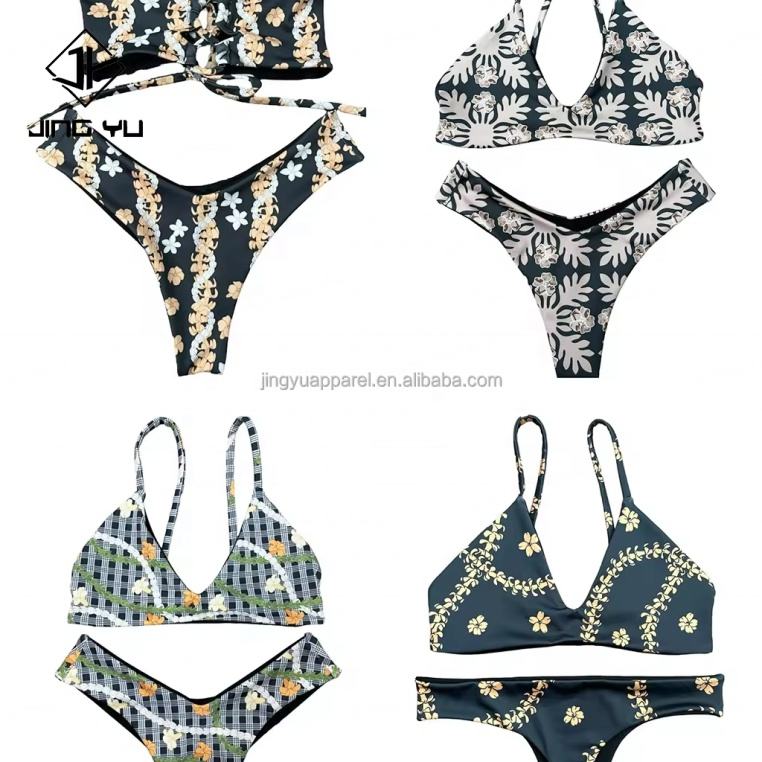 Trajes de Baño Bikini Personalizados con Etiqueta Privada 2024, Conjunto de Bikini Estampado, Trajes de Baño Hawaianos para Mujer