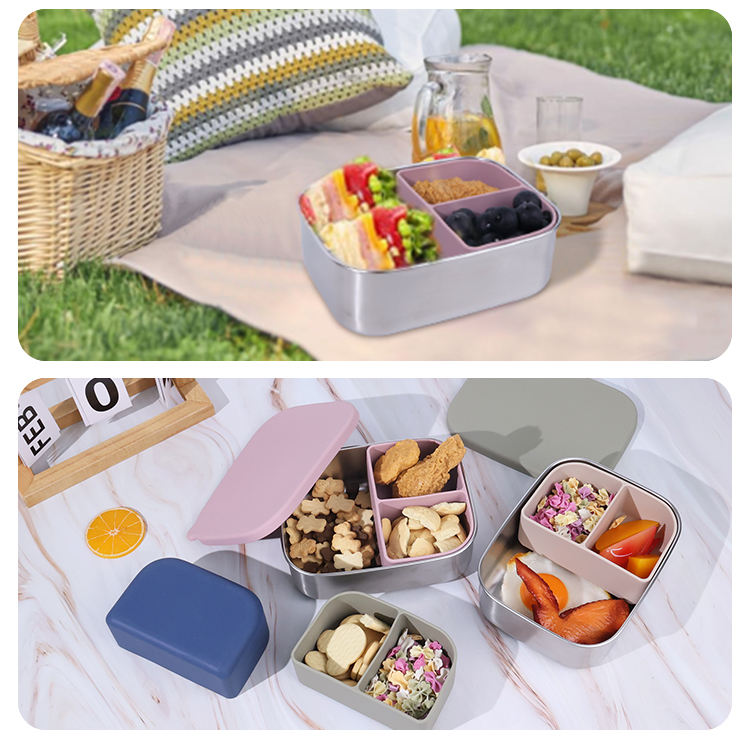 Fiambrera personalizada de nuevo diseño 2024 para niños, fiambrera de acero inoxidable 304, fiambrera de Metal para niños, fiambrera Bento con tapa de silicona