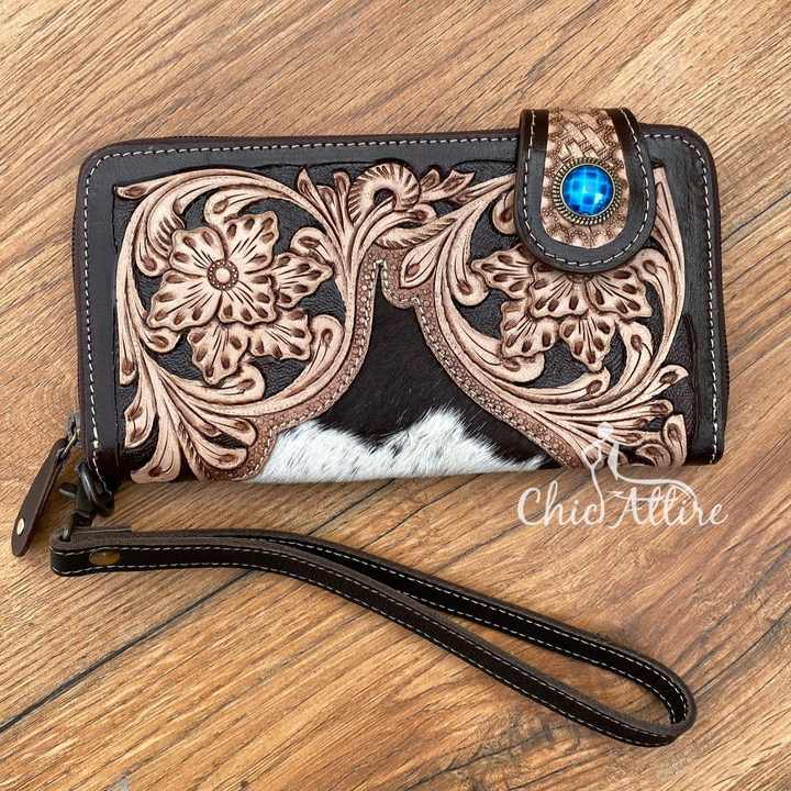 Product name:Hand Tooled Leather Wristlet Wallet