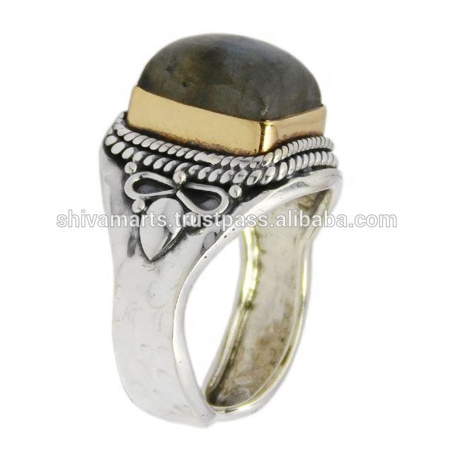 2024 nuevo diseño labradorita cojín corte piedra preciosa bisel conjunto dos tonos ajustable eternidad Vermeil anillo rodio plateado joyería fina