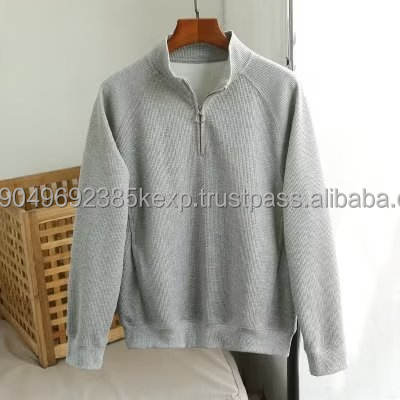 Sudadera con capucha tipo waffle de nuevo diseño 2026 para hombre, color liso, manga larga, tipo polo, con media cremallera