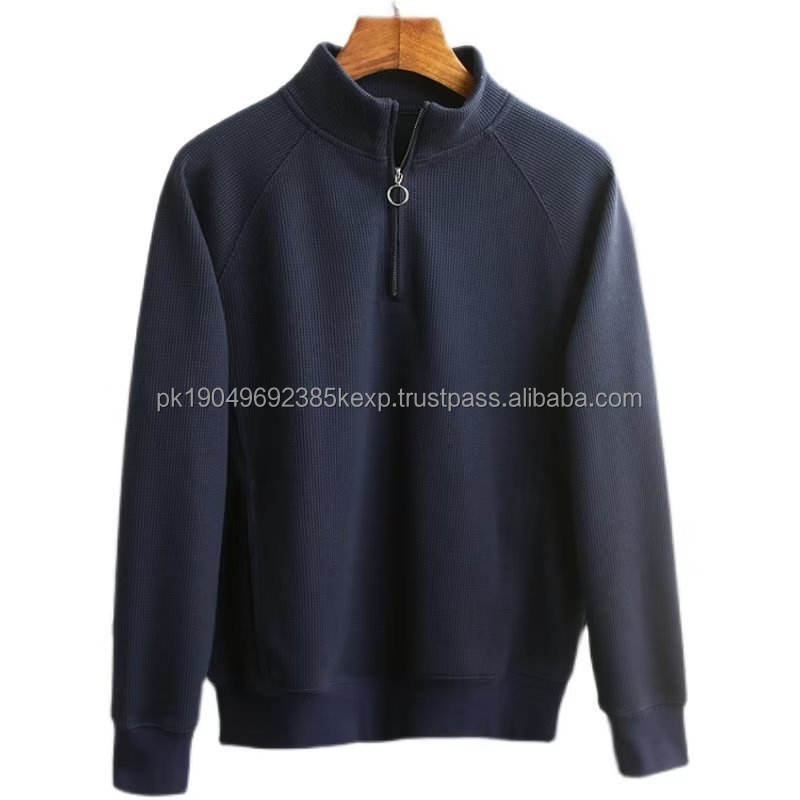 Sudadera con capucha tipo waffle de nuevo diseño 2026 para hombre, color liso, manga larga, tipo polo, con media cremallera