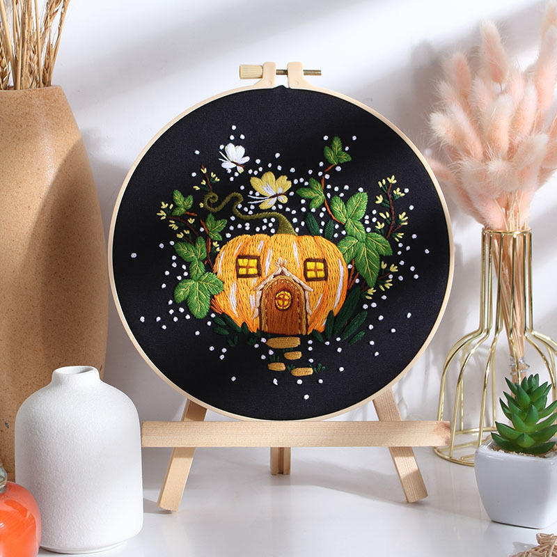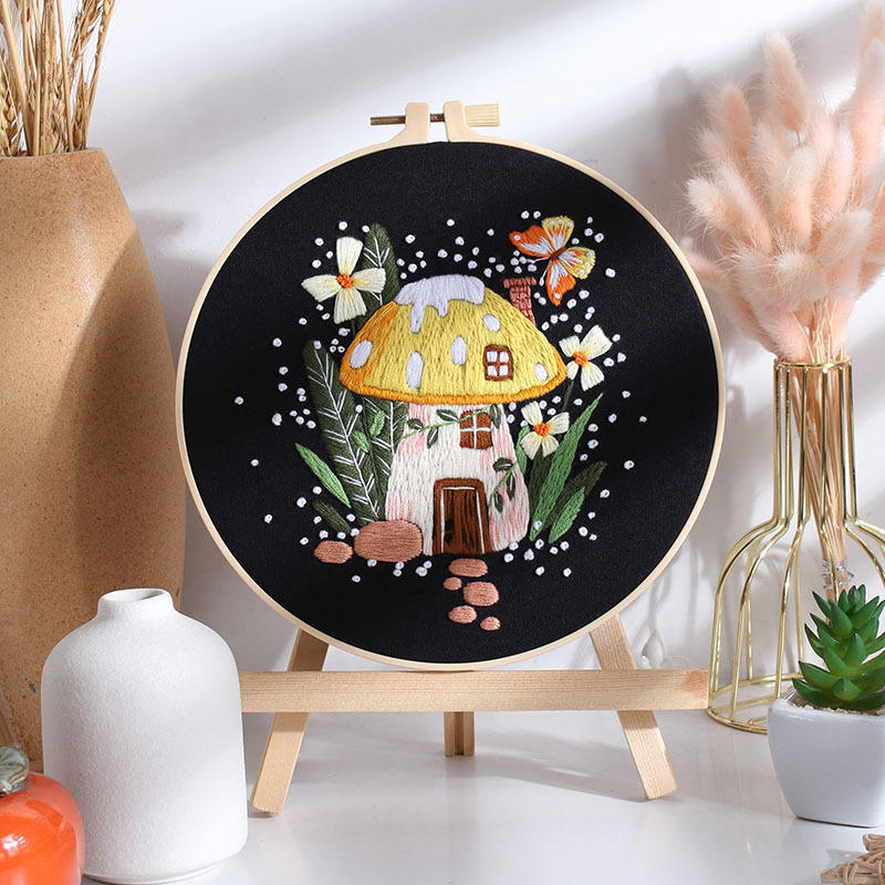 2024 nuevo diseño Mushroom House Kit de bordado iniciado a mano para principiantes con aro de bordado e instrucciones
