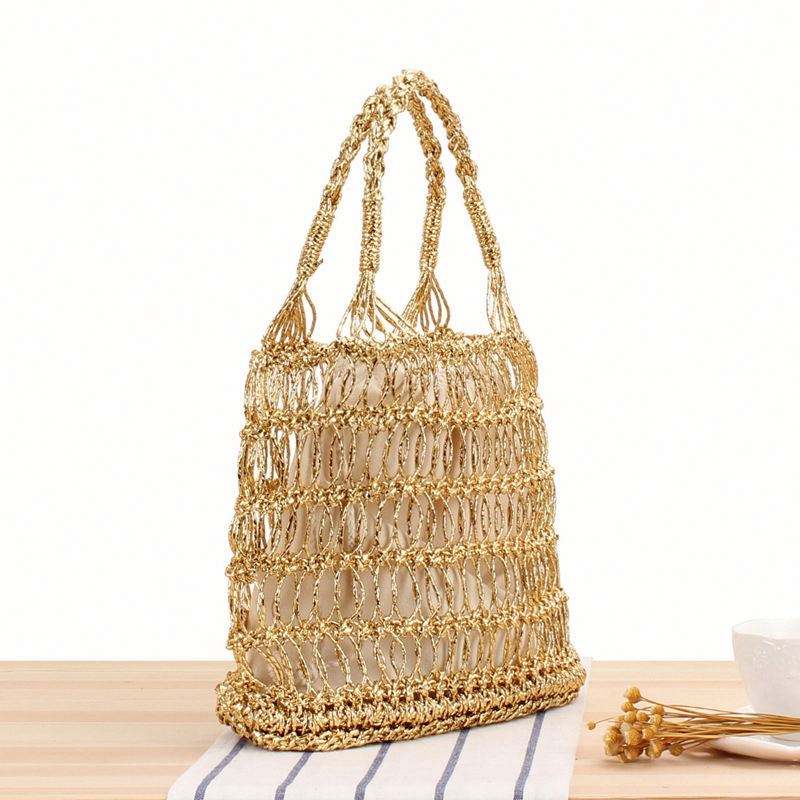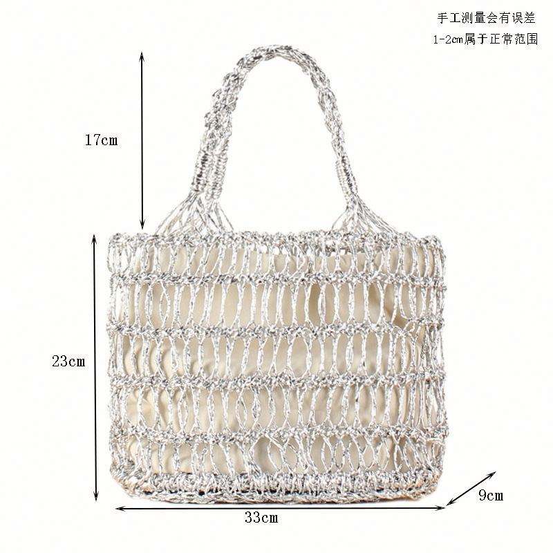 Bolso de mano de paja para mujer, diseño hueco con hilo dorado y plateado, trenzado a mano, para verano, moda, vacaciones, playa, 2024