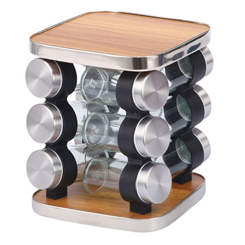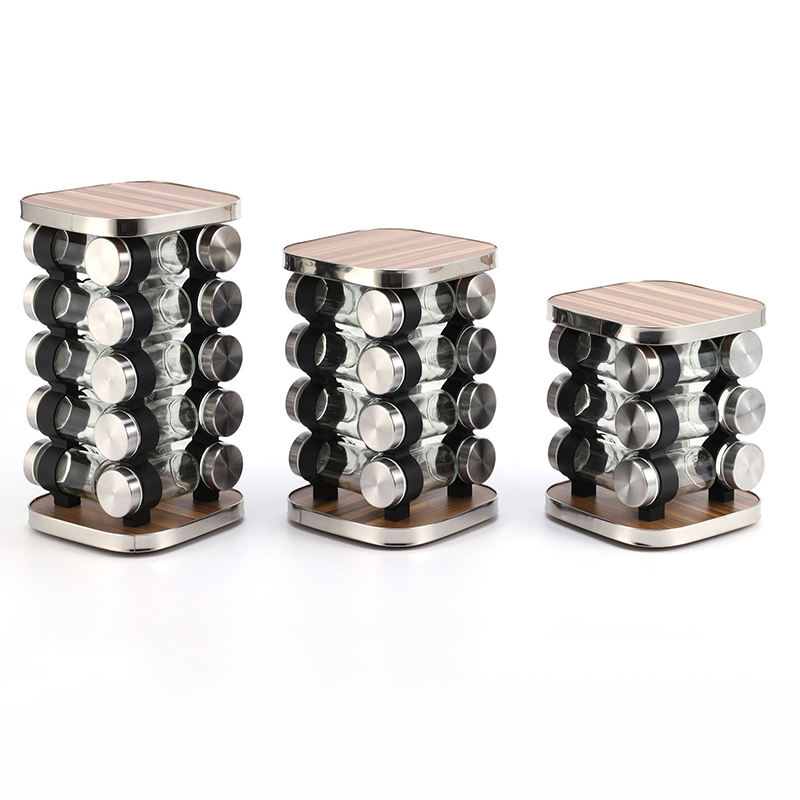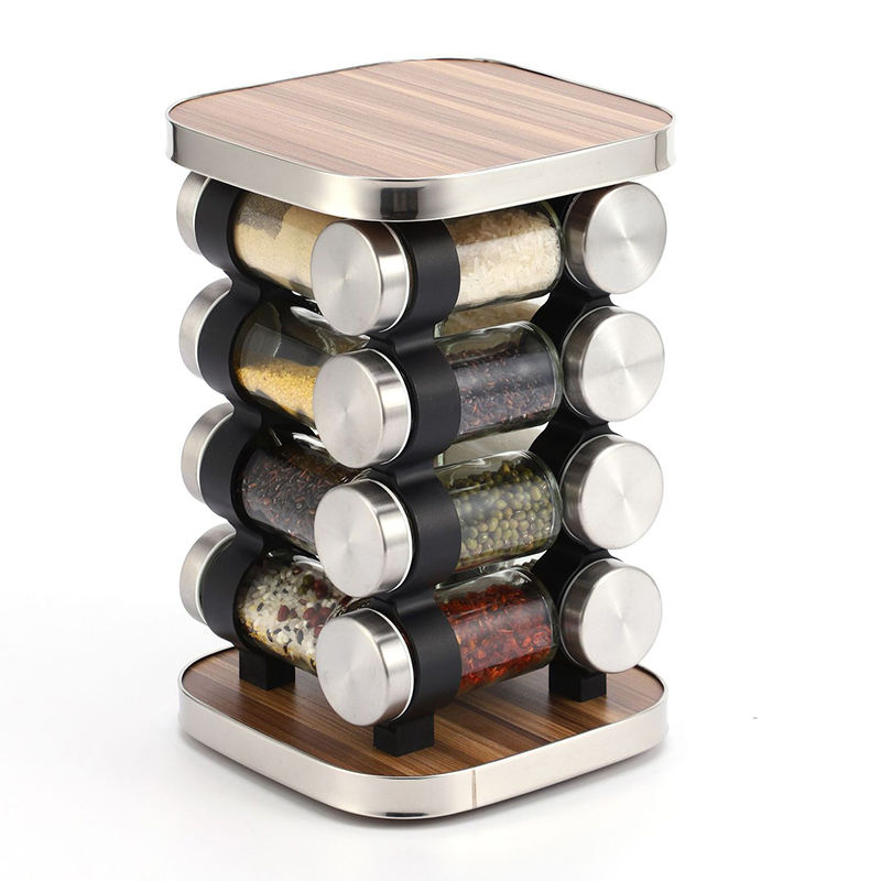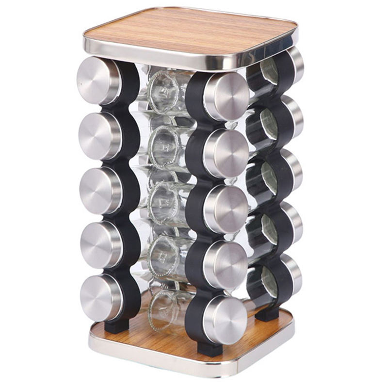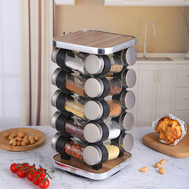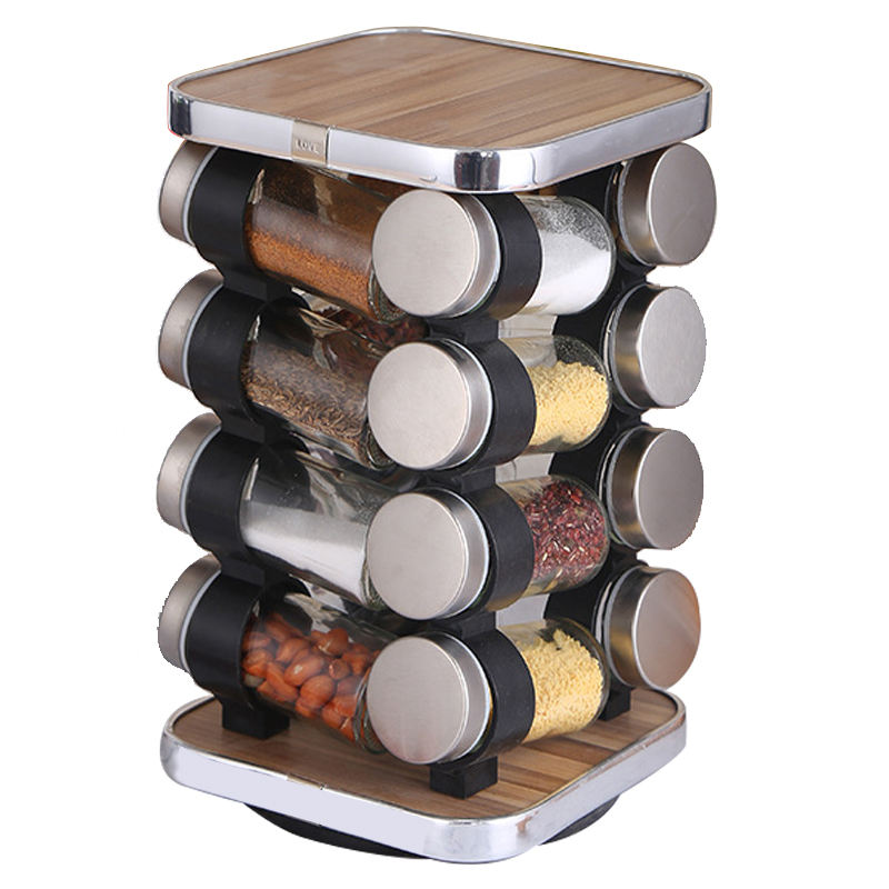 Nuevo Organizador de Especias de Bambú Giratorio de 3 Niveles con Frascos de Vidrio Herméticos para Encimera, 2026