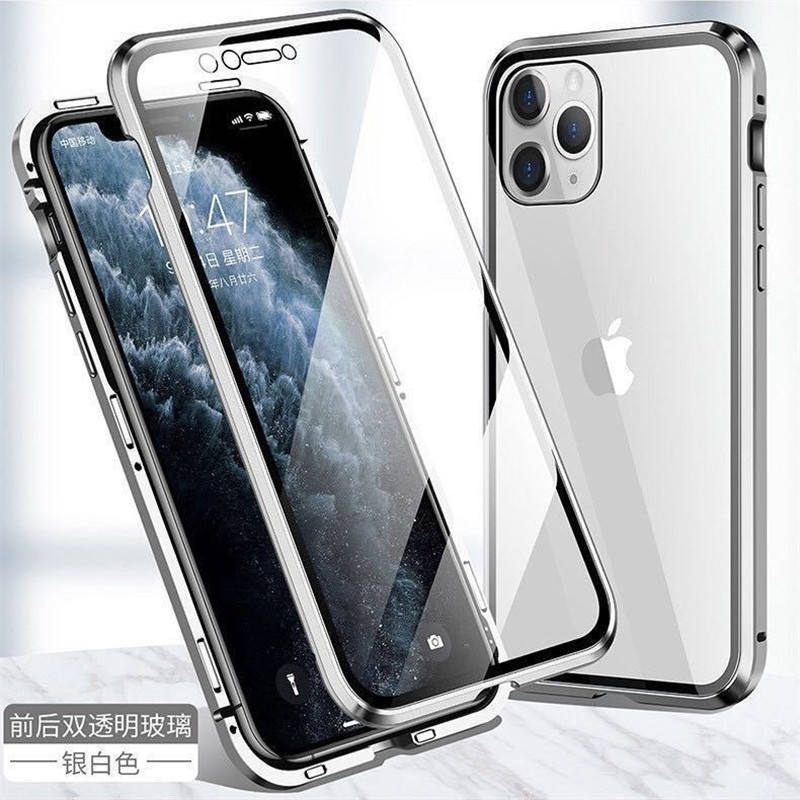 2024 nuevo modelo de metal de alta calidad + Fundas de teléfono magnéticas de vidrio templado para iPhone 16 15 14 13 Plus Pro Max Case