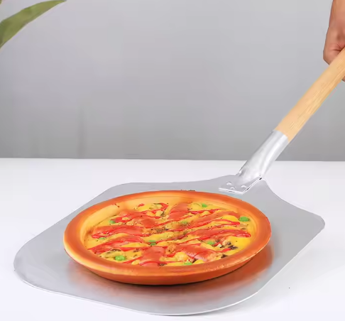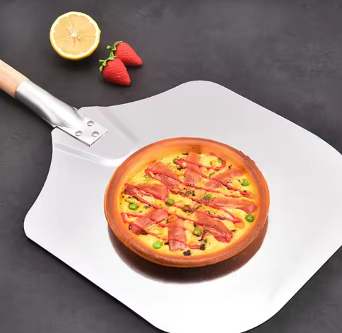 Pala para Pizza Multifuncional Cuadrada de Aluminio, No Desmontable, con Mango de Madera, Accesorios para Horno, Novedad 2024