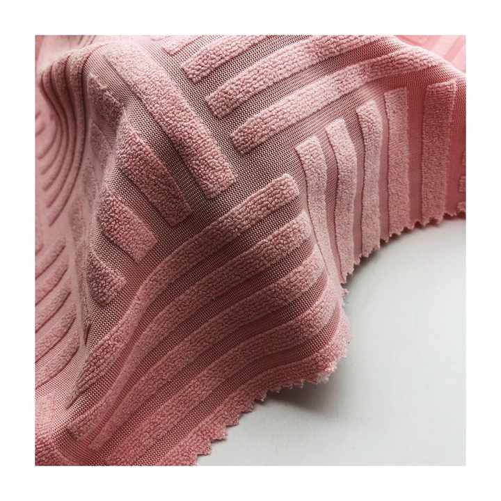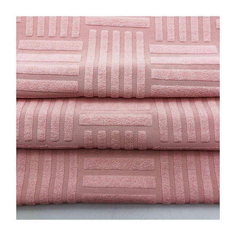 2024 nuevo patrón de barra vertical y horizontal de punto 285gsm 79% poliéster 20% algodón 1% SPX toalla Rosa tela de rizo para ropa