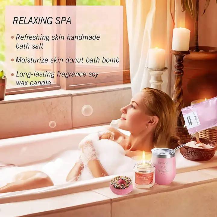 Nuevo Producto 2024, Set de Regalo Orgánico para Spa, Regalo de San Valentín para Chicas, Bomba de Baño, Vaso para Vino, Sets de Regalo para Baño de la Mejor Calidad
