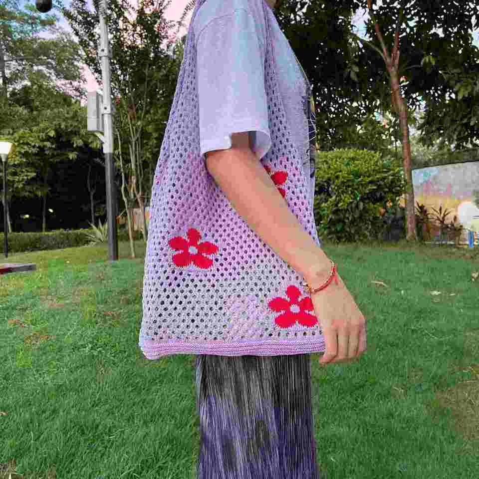 Bolso de mano de ganchillo con patrón floral de primavera 2024, bolso de punto hueco de malla a la moda