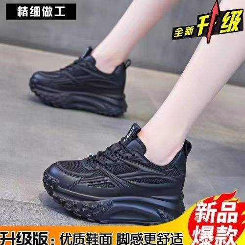 2025 nuevos zapatos informales para mujer con aumento de altura, estilo mamá con suela gruesa, malla transpirable no tejida, cómodos zapatos de suela gruesa