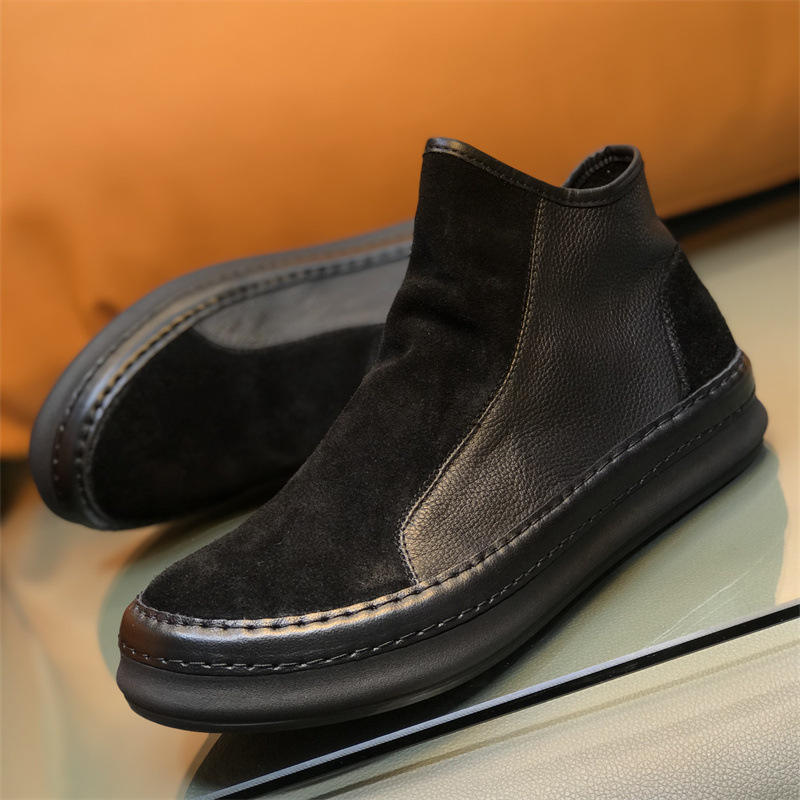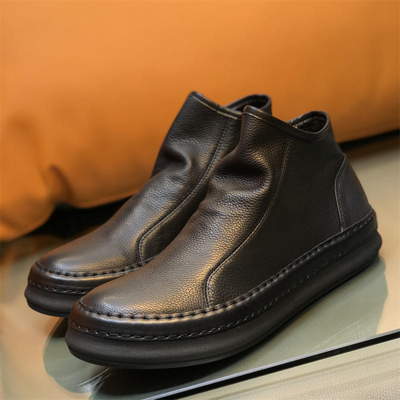 2024 nuevo estilo de cuero, zapatos de tablero alto, zapatos Retro para hombre, botas de cuero de tendencia, botines con cremallera lateral