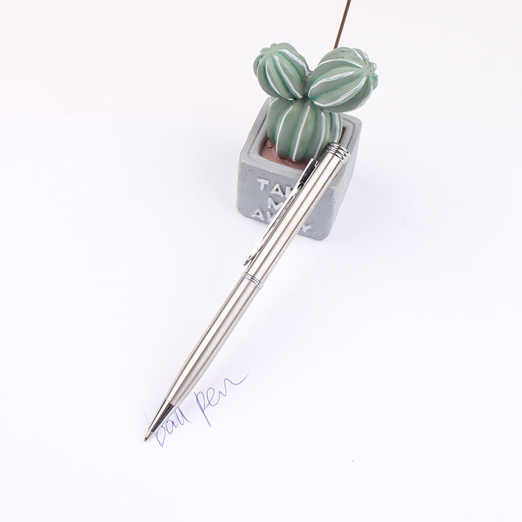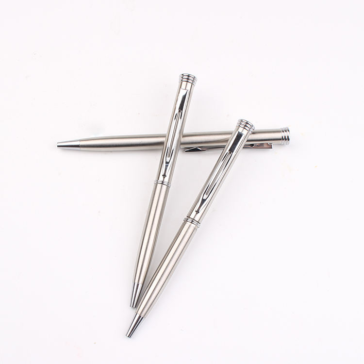 Bolígrafo Metálico Giratorio Plateado de Bolsillo, Mini, Estilo 2024