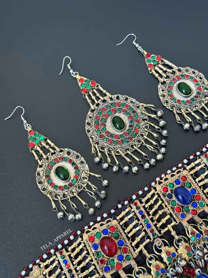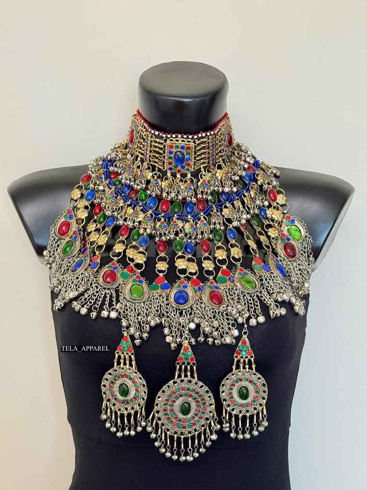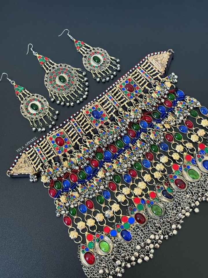2024 nueva tendencia conjuntos de joyería hechos a mano de alta calidad personalizados multicolor joyería afgana pendientes collar y tocado Tikka conjuntos