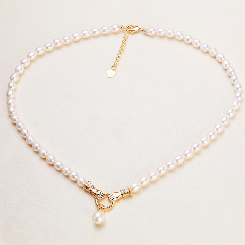 Collar de Perlas de Agua Dulce para Mujer, Tendencia 2024, Hecho a Mano, Estilo Rosa, Disponible al por Mayor