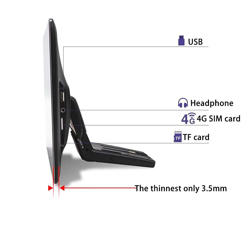 Combinación:Reproductores MP3 / MP4, Sintonizador Radio, Pantalla táctil, TV, Transmisor FM, Puerto AUX, Tarjeta de 4G SIM, Cámara