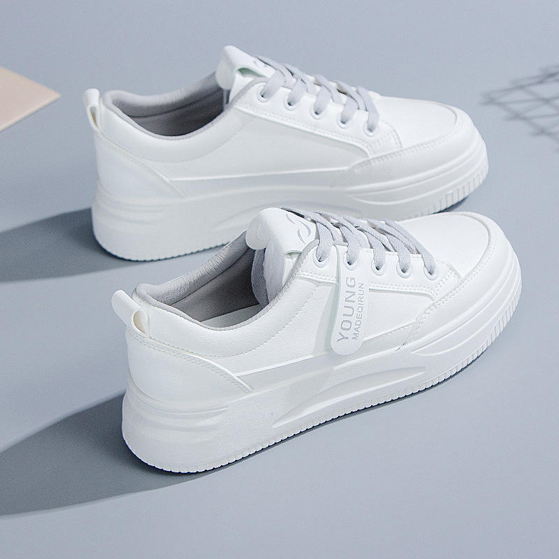 2024 zapatos blancos ligeros populares de primavera y otoño con parte superior de cuero elevado y suela blanda para mujer
