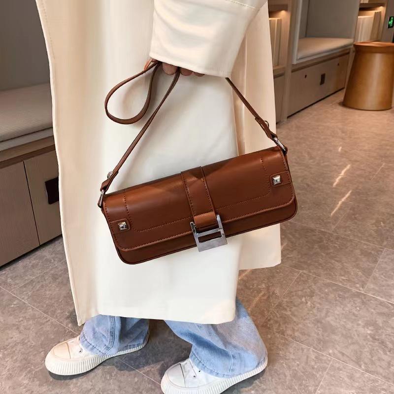 2024 Popular de moda de cuero Pu para mujer, bolsos de un hombro, bolso informal minimalista para axilas para mujer
