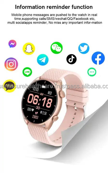 Cronógrafo, Termómetro, Reloj despertador, Control remoto, Rastreador de sueño, seguimiento de forma, Recordatorio de llamada, Respuesta telefónica, Mensaje emergente, Recordatorio de mensajes, Marcar llamada, Monitor de ritmo cardíaco, Seguimiento de la actividad, Notificaciones de Medios sociales, Rastreador de calorías, Podómetro, Llamada de voz, Monitor de respiración, Rastreador multideporte, Reproductor DE MÚSICA, Recordatorio sedentarioFunción