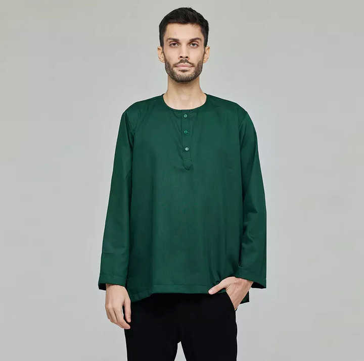 2025 Raya moda bordado Malasia Kurta Tops Malasia Kurta cuello y mangas diseños liso Malasia Kurta pijama Legan
