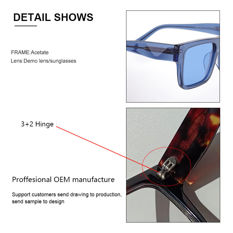Gafas de Sol de diseño vintage con montura polarizada retro 2024, gafas de sol cuadradas de material de acetato para hombres
