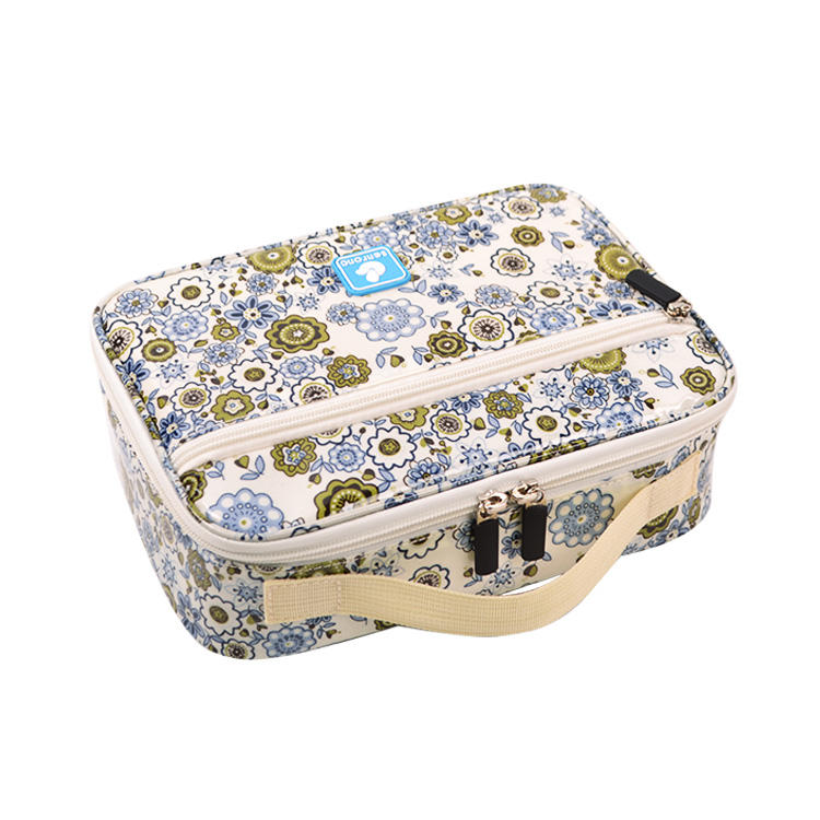 Bolsa de maquillaje con cremallera de algodón con estampado Floral de primavera 2024, bolsa de cosméticos de viaje de gran capacidad para mujer