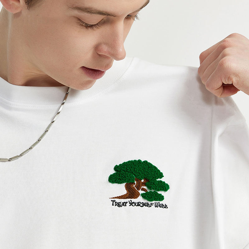 2024 Primavera Verano hombres Jersey Camiseta estilo minimalista manga corta Chenille bordado árbol de pino diseño Casual personalizado
