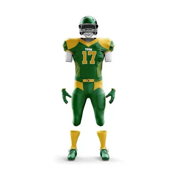 Uniforme de fútbol americano de diseño personalizado sublimado para hombre 2024, uniforme de fútbol hecho en fábrica directo de talla grande