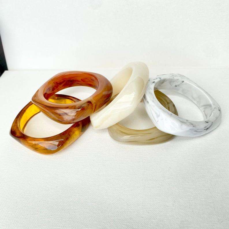 Brazaletes de resina gruesos coloridos de verano 2024 para mujer, brazalete de acrílico con textura cuadrada Irregular grande a la moda para niñas
