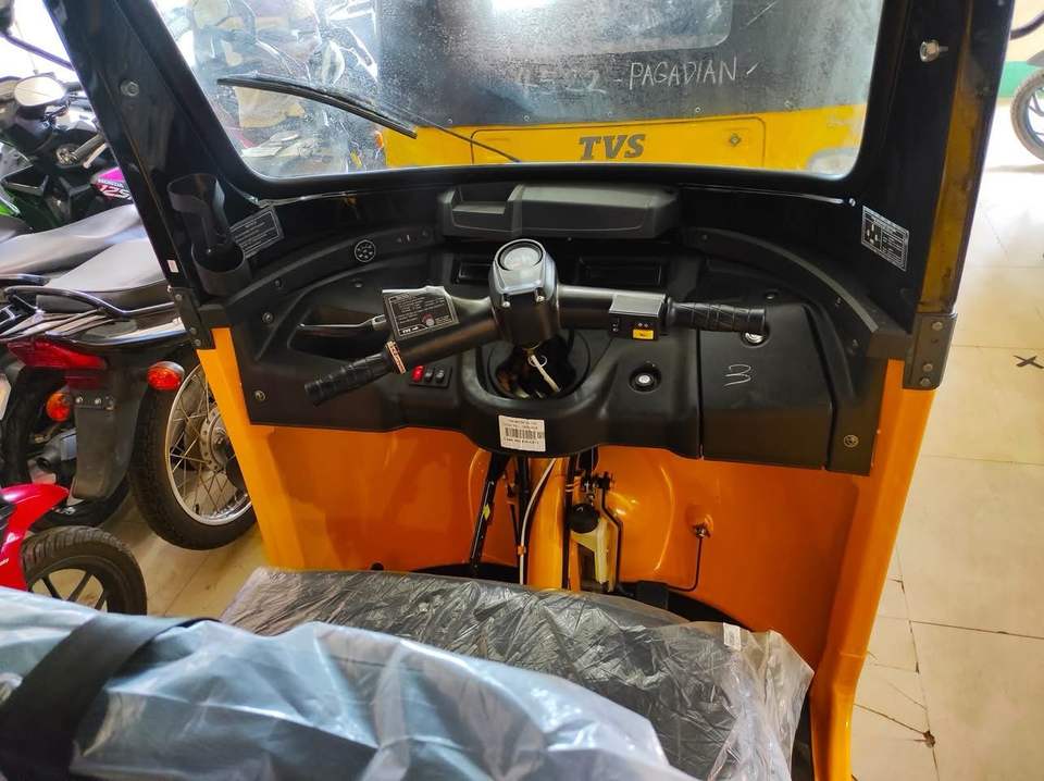 Triciclo de Gasolina TVS King Deluxe de 3 Ruedas, Amarillo Dorado, Modelo 2024