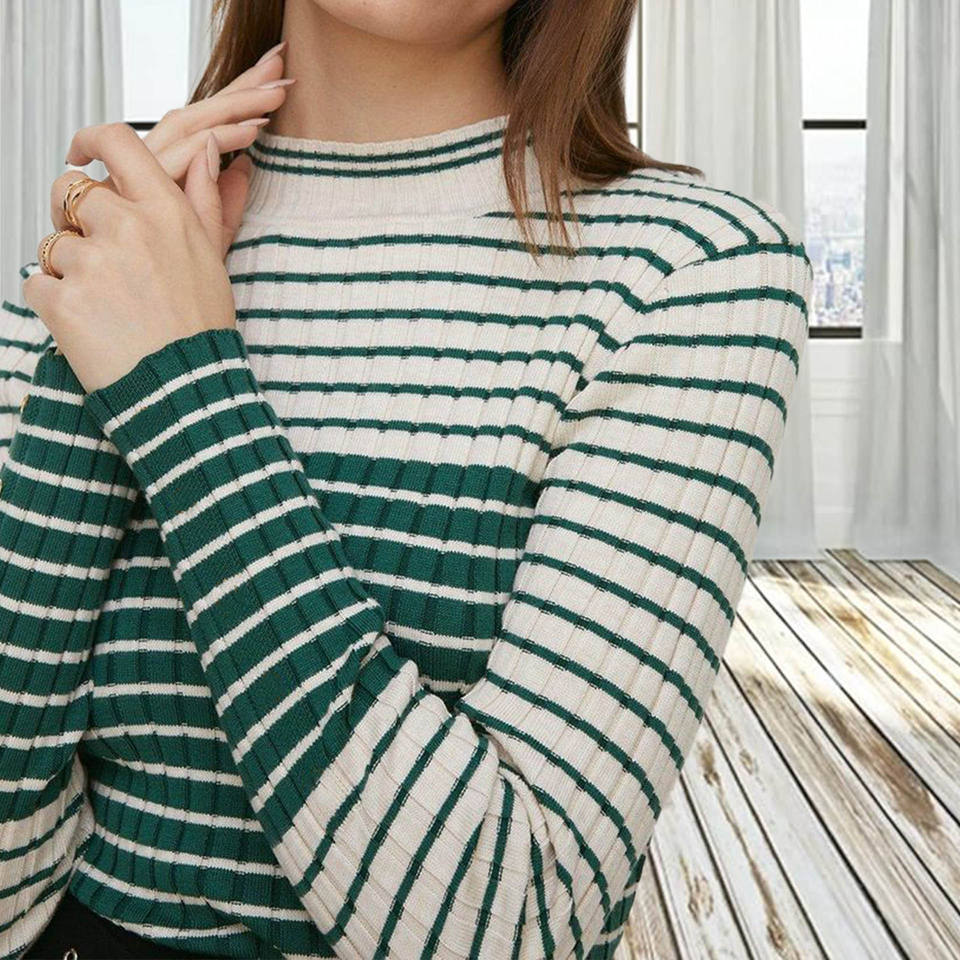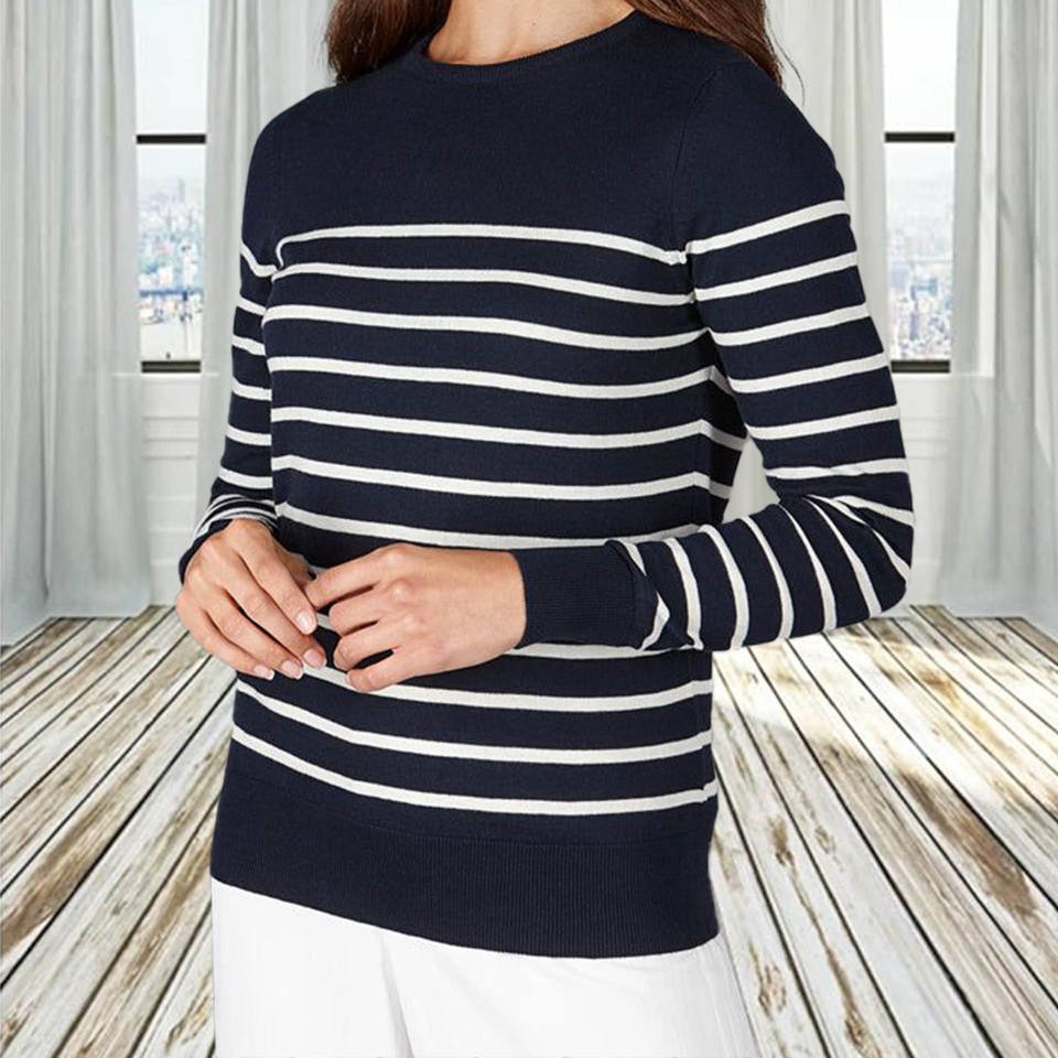 2024 Top venta OEM personalizado nueva manga completa Streetwear rayas y náutica señoras tejido camiseta Crop Top para mujer