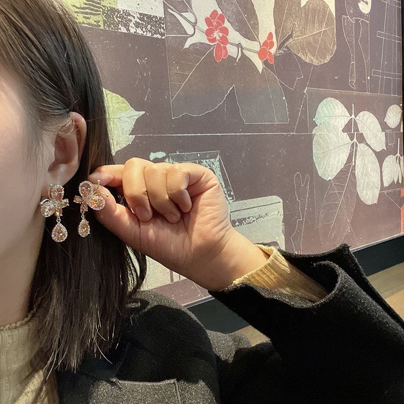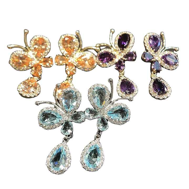 Pendientes de mariposa chapados en oro de 18 quilates de moda 2024, pendientes de gota de agua Micro pavimentados de circonita azul para mujer, joyería CZ, pendientes de gota de flor