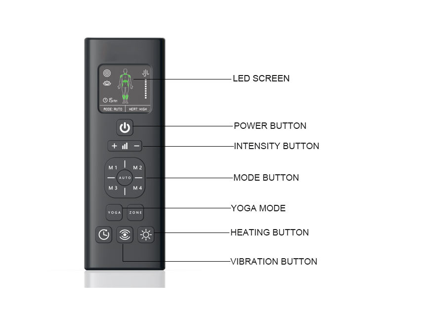 Control de tiempo, Shiatsu, Vibrando, Amasando, Calefacción