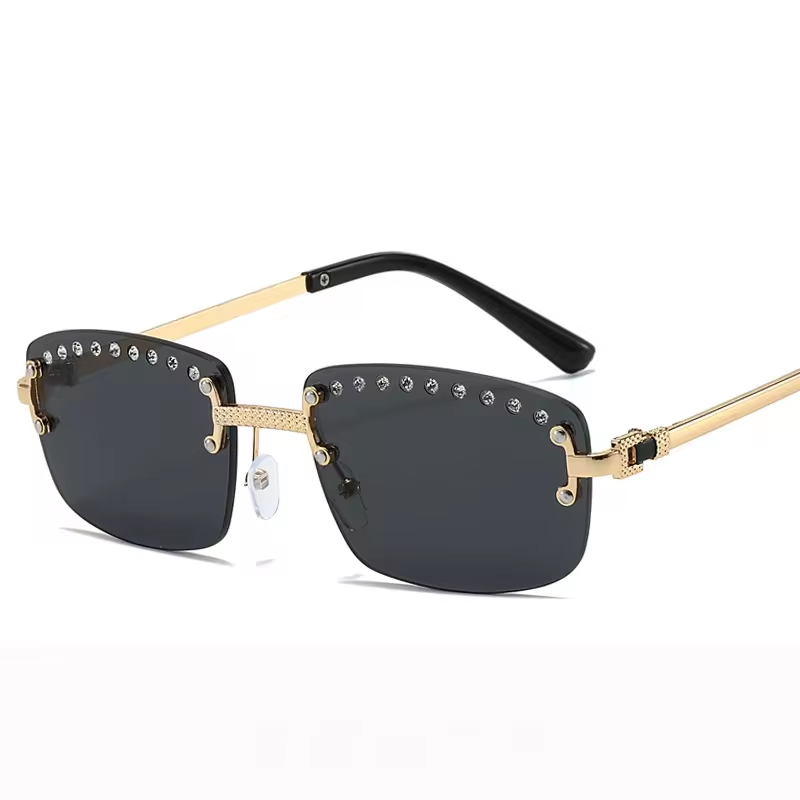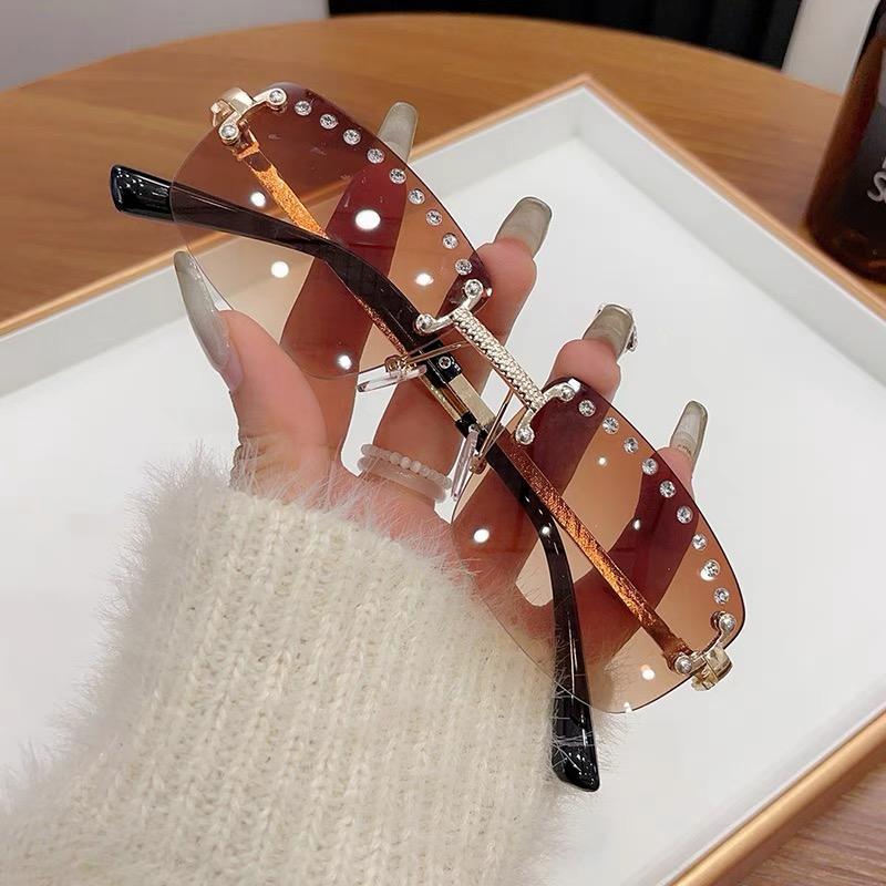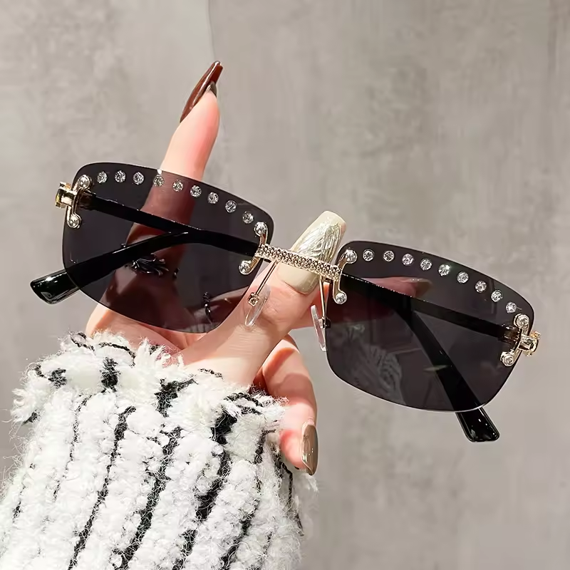 Gafas de Sol Unisex de Moda 2024, Vintage, Pequeñas, Cuadradas, Sin Montura, Lentes de PC UV400 Azul Verde, Polígono Gris Degradado, Diamante, Lujo, Hip