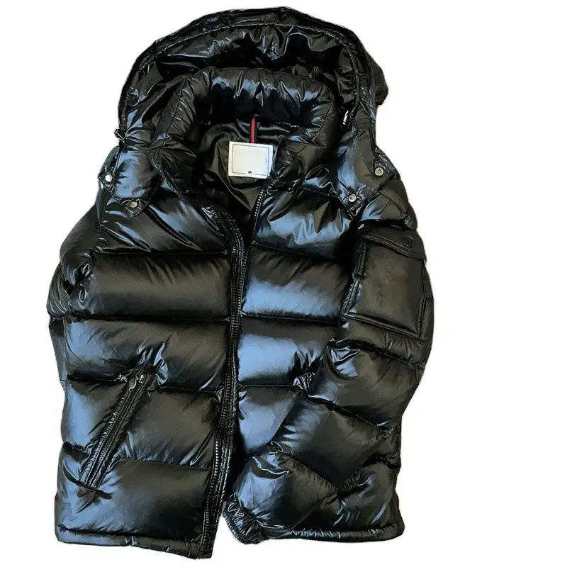 Abrigos de burbujas brillantes de plumón de ganso a la moda, chaquetas acolchadas con capucha y logotipo personalizado para hombre, 2024