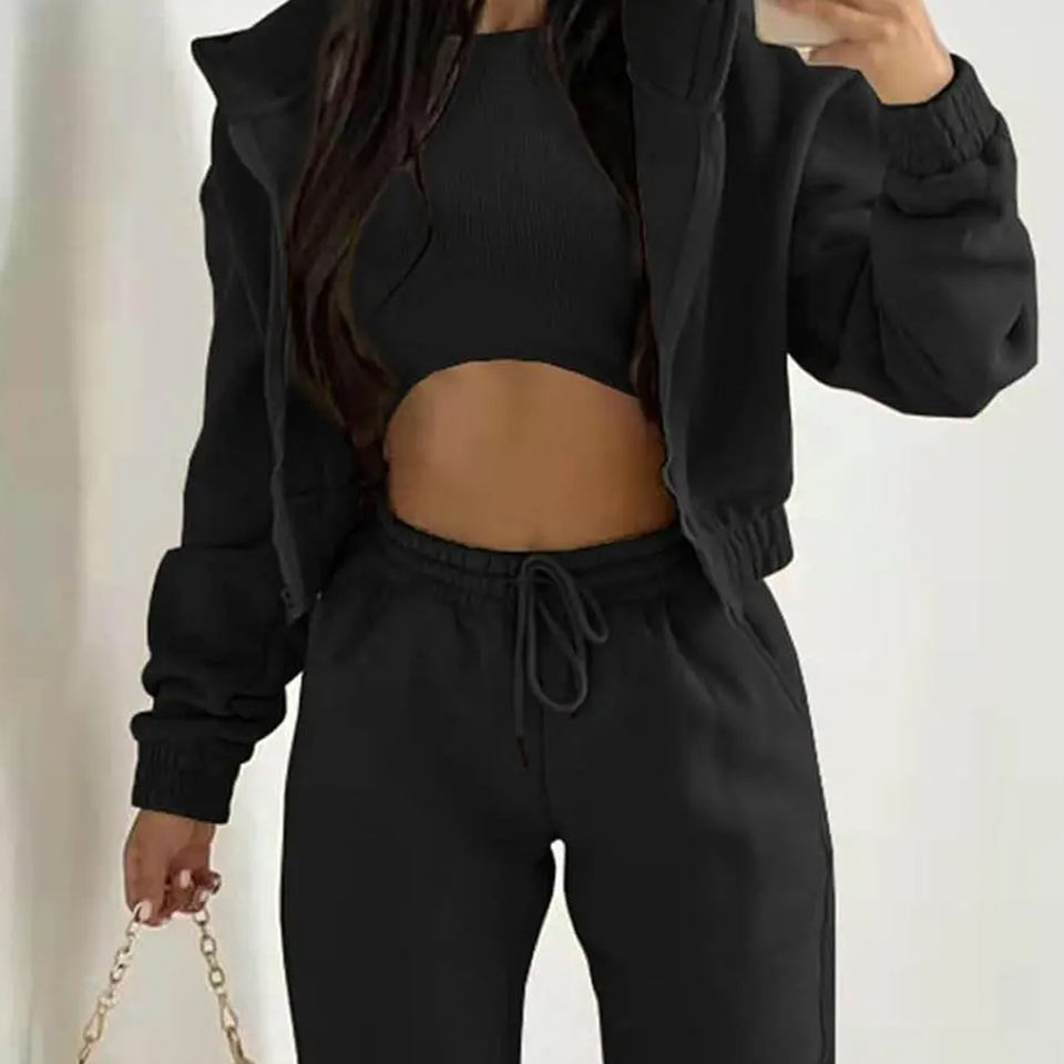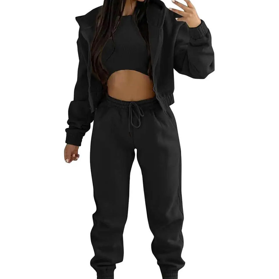 Keywords:Cropped SweatShirt Half Zip up And SweatPant Jogging suit Women