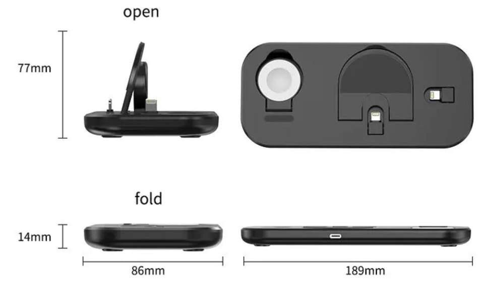 Nombre del producto:Cargador inalámbrico plegable bien diseñado 3in1 para Airpods del teléfono
