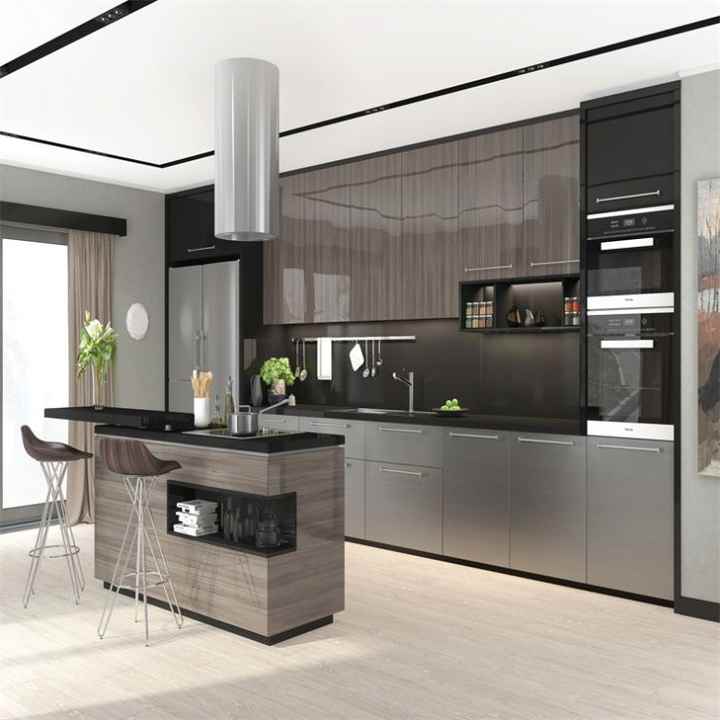 Juego de Muebles de Cocina Modulares Zensinc 2024, Madera de Pino Maciza de Alto Brillo, Ecológica, para Proyectos Residenciales, Cocina Completa