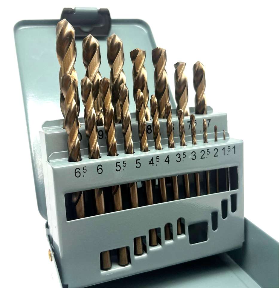 2025 19PCs M35 Punta de 135 grados Acero inoxidable Plástico y madera con caja de almacenamiento de índice de metal