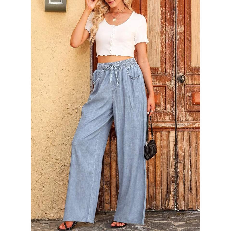 Pantalones Vaqueros de Pierna Ancha de Cintura Alta para Mujer, Verano 2024 2025, con Cordón, B0C6P27LH4