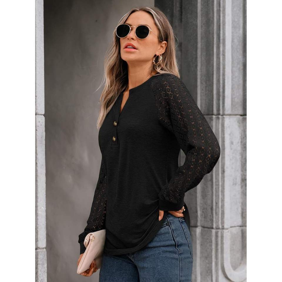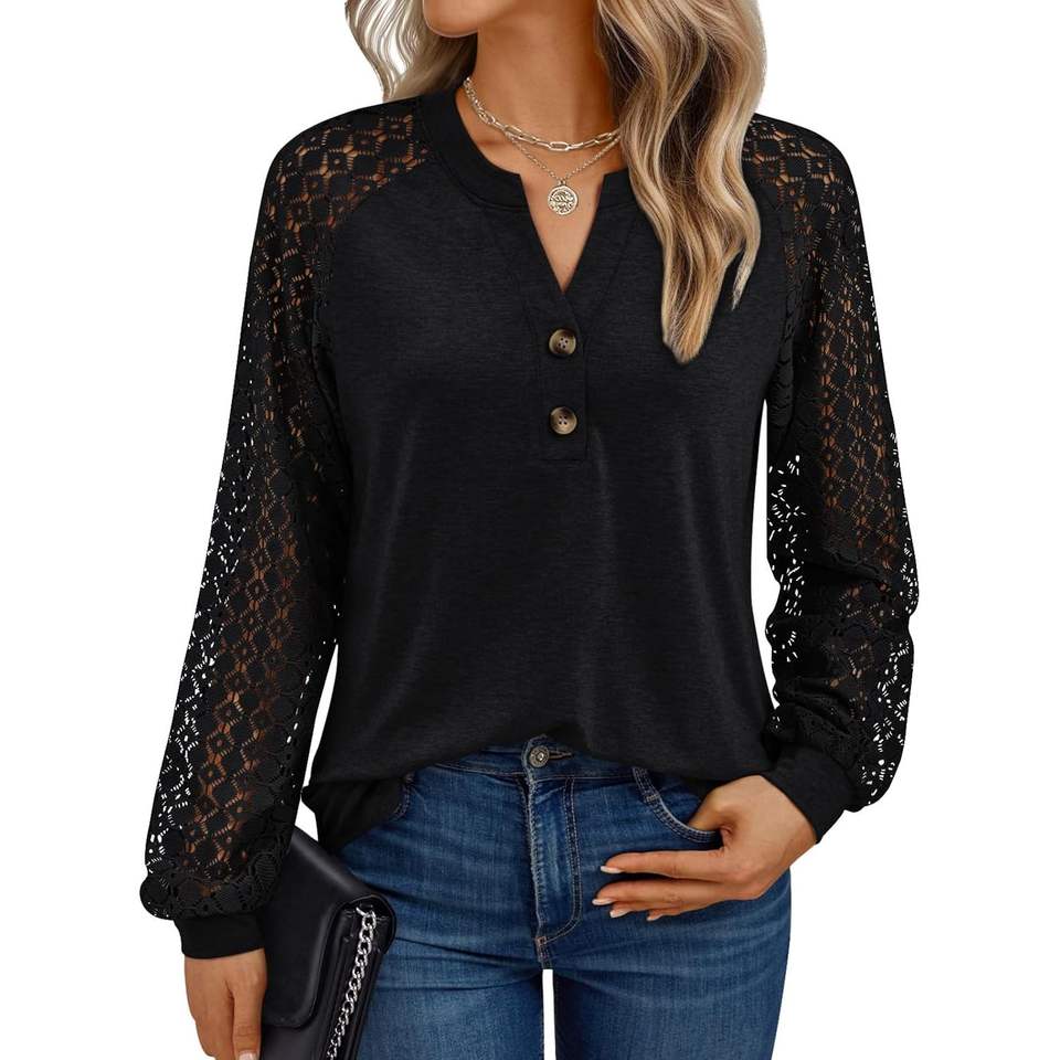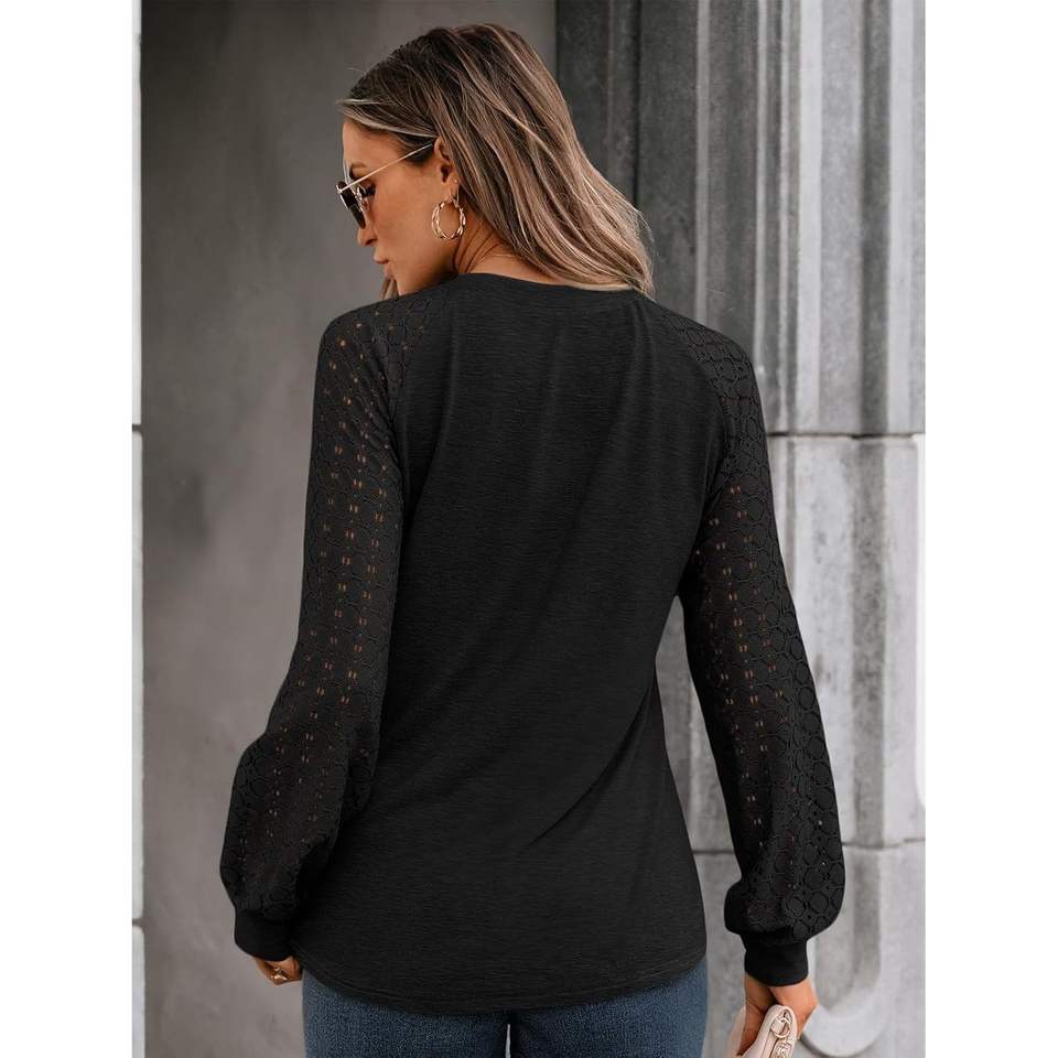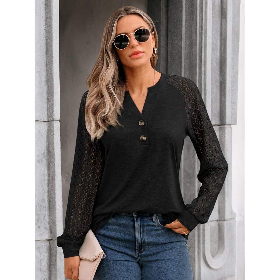 2025 2025 otoño moda mujer Tops blusas con cuello en V con encaje manga larga Casual trajes de negocios talla XL
