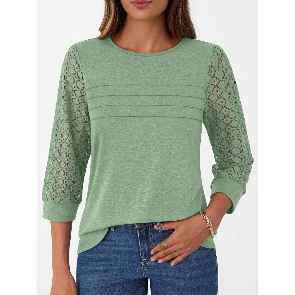 2025 2025, trajes de moda de otoño para mujer, camisas informales elegantes de manga larga 3/4, camiseta de manga de encaje, informal de negocios, talla XL