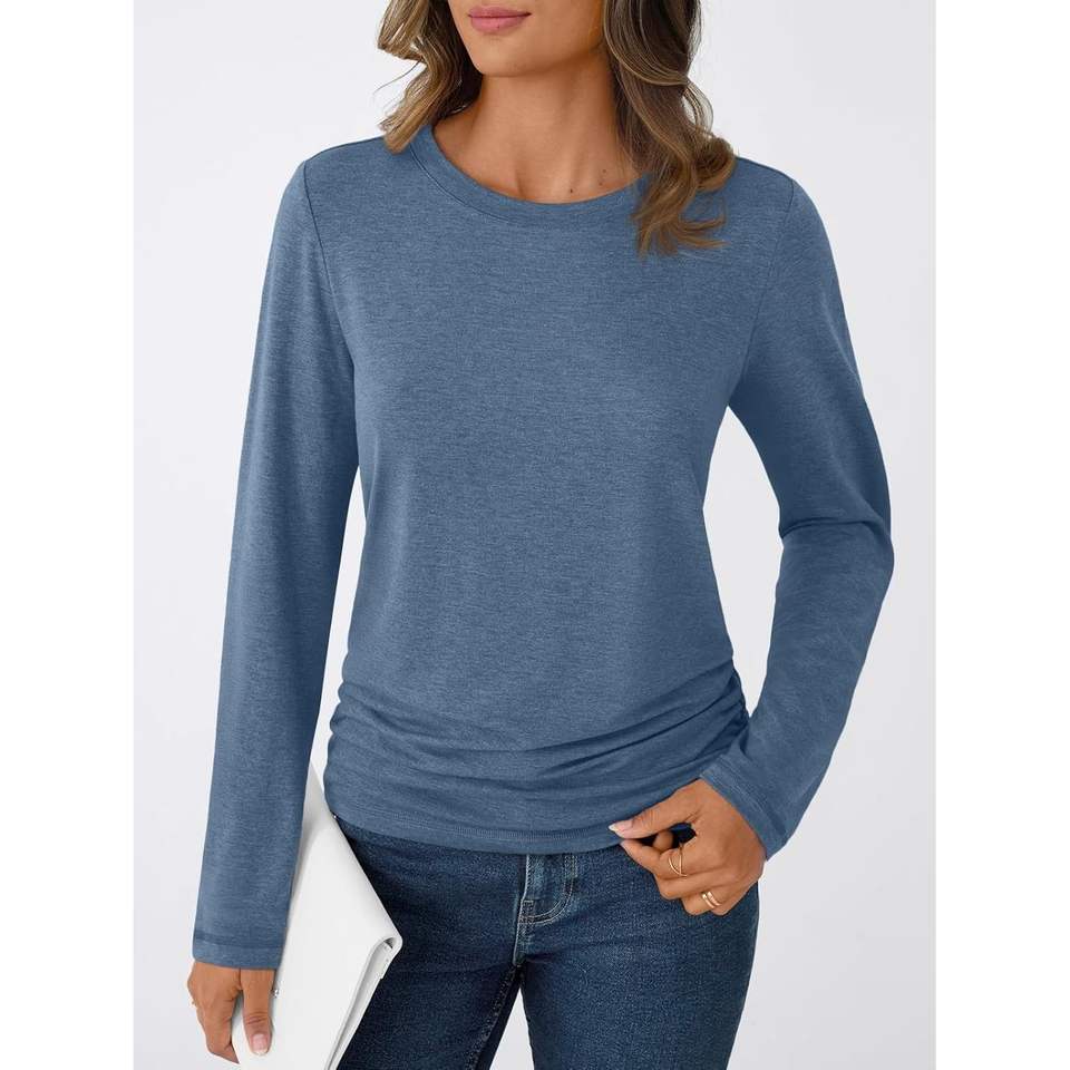 2025 2025, camisetas de manga larga con cuello redondo para mujer, Camiseta básica de otoño, diseño fruncido, trajes informales de negocios a la moda, logotipo de talla XL