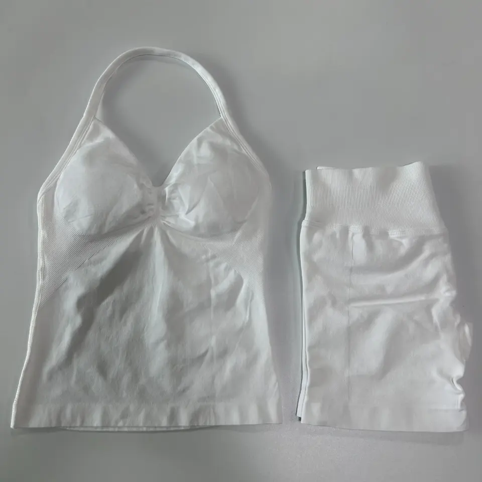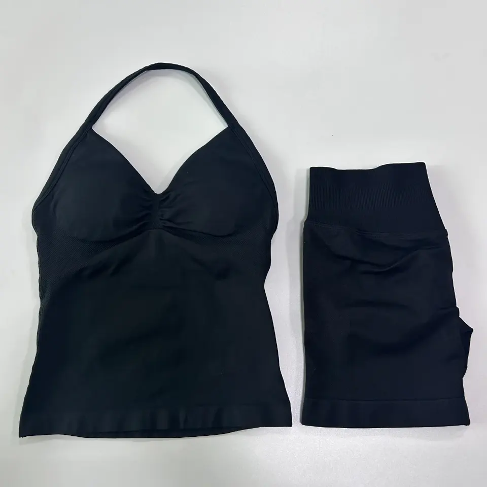 2025 2 uds conjunto de camisetas sin mangas para mujer de cintura alta Scrunch pantalones cortos sin costuras traje de gimnasio ropa deportiva conjuntos de entrenamiento