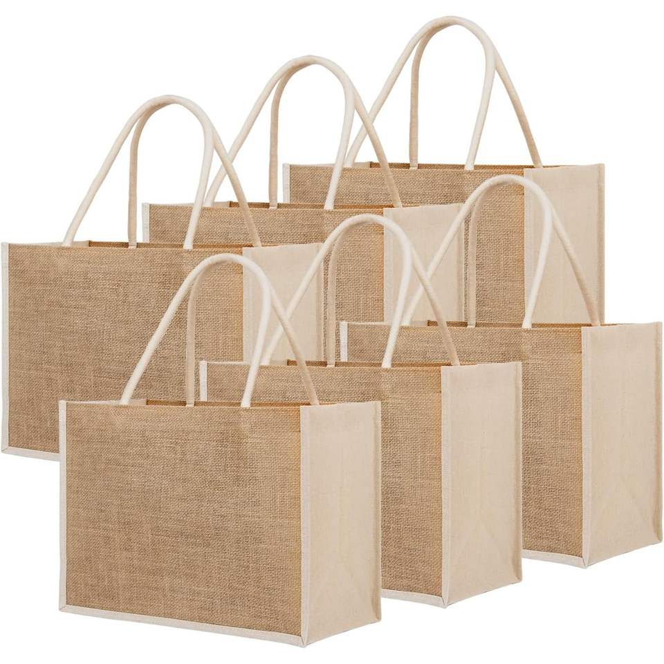 2025 6 uds bolsas de yute medianas reutilizables arpillera bolsas de compras patrón de letras Transferencia de Calor bolsa de dama de honor para boda