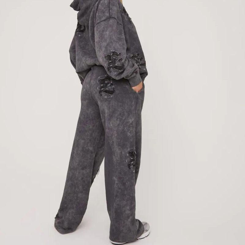 2025 ácido lavado sol se desvaneció desgastado bordado acampanado traje de chándal de hombre 100% algodón para chándal Unisex chándales para hombres