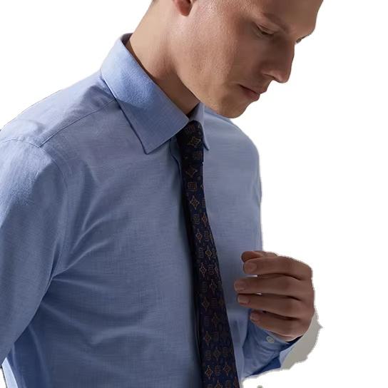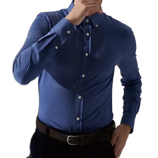 2025 Amazon Plain Color sólido de alta calidad de algodón blanco con botones en el bolsillo frontal de manga larga de oficina para hombre camisas de vestir formales