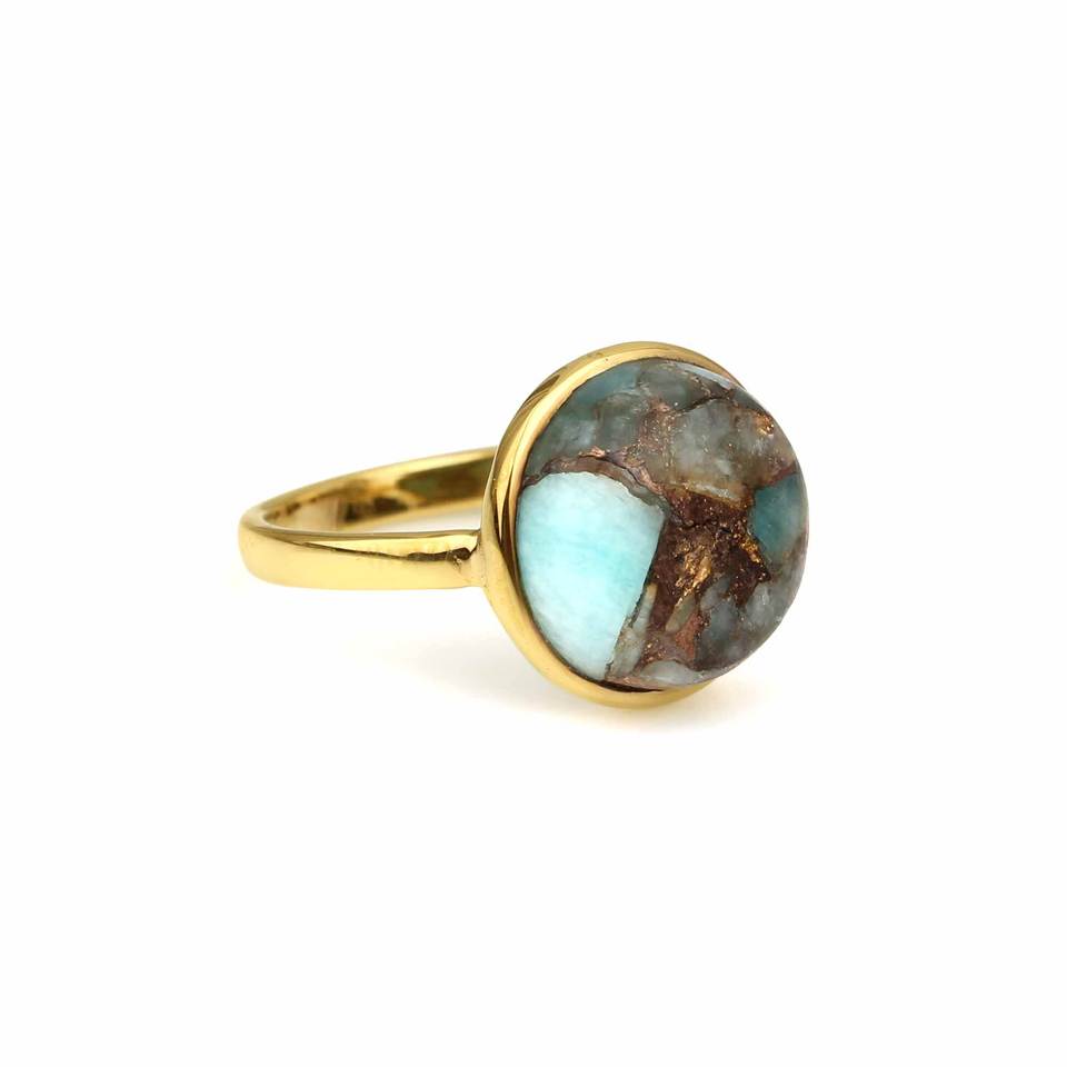 Natural Gemstone Silver Gold Plated Ring