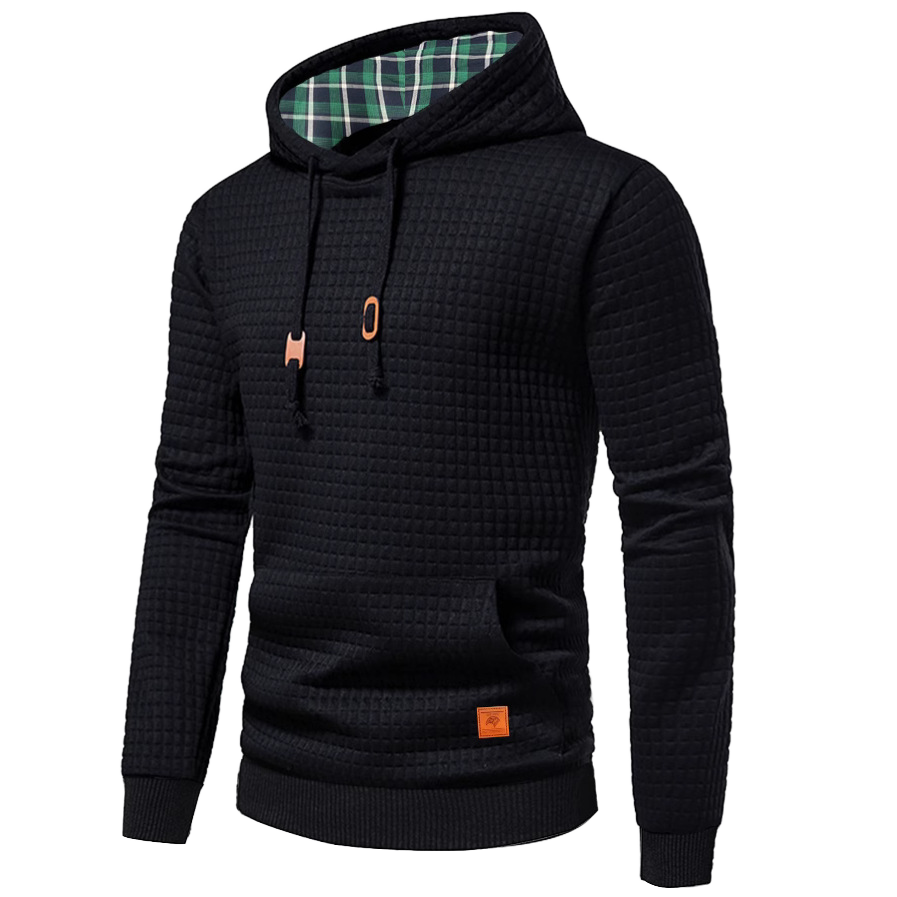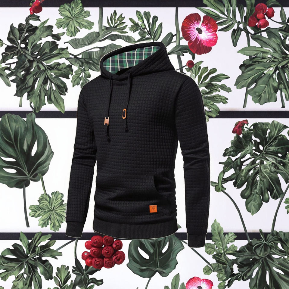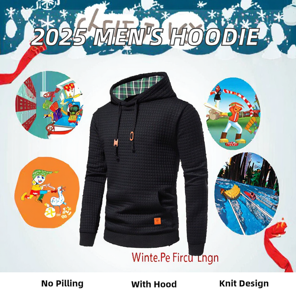 2025 Otoño Invierno colección hombres Casual de gran tamaño Jacquard pulóver Sudadera con capucha sólido diseño a cuadros suelto ajuste largo